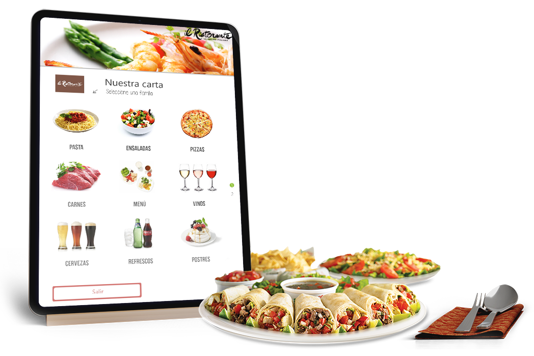 Muestra tu carta o menú con la carta electrónica interactiva multiidioma y ahorra costes de impresión de la carta o el menú diario. Tus clientes pueden ver el menú y la carta de forma interactiva, con fotos y descripciones de los platos, información de los ingredientes, alérgenos, calorías y sus precios.